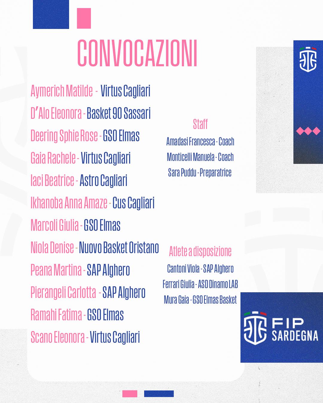 SARDEGNA: Gaia 2, Aymerich 2, Niola, Peana 6, Marcoli 10, Scano 4, D’Alò 29, Iaci, Deering, Ramahi 1, Ikhanoba 10, Pierangeli. Allenatori: Francesca Amadasi e Manuela Monticelli.